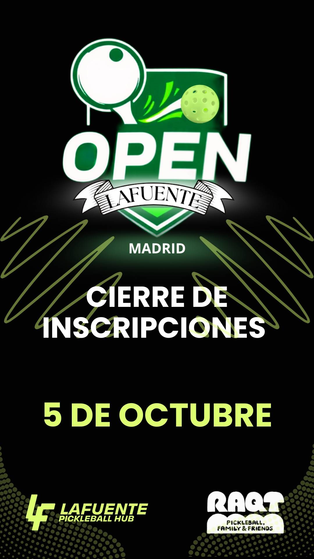 El tiempo vuela… y si todavía no te has apuntado al Open Lafuente Madrid, esta es tu señal. El próximo 5 de octubre a las 23:59h se cierra el plazo de inscripciones, así que no lo dejes para el último minuto.