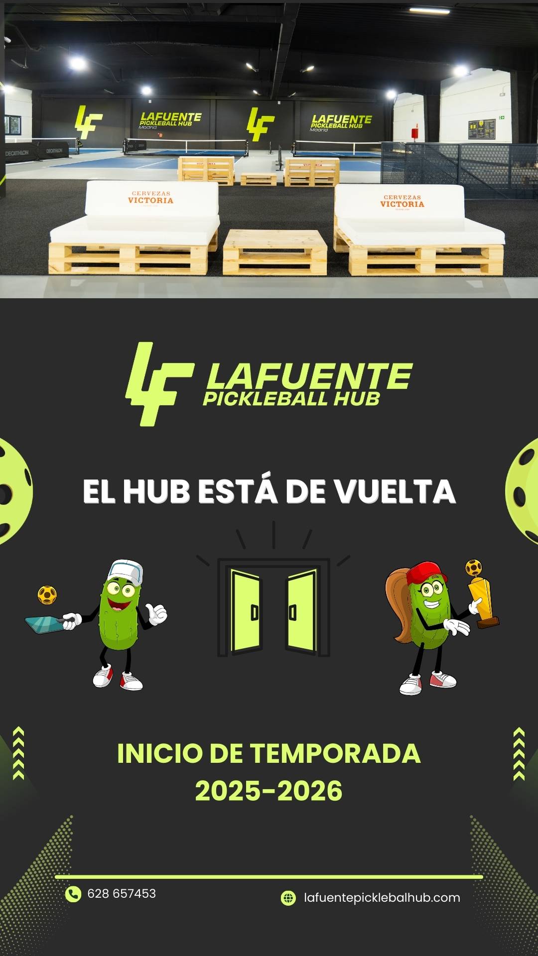 ¡Se acabó la espera! Lafuente Pickleball Hub reabre sus puertas y da el pistoletazo de salida a la temporada 2025-2026, que viene cargada de actividades, eventos especiales y más de una sorpresa para todos los fans del pickleball (y quienes están por descubrirlo).